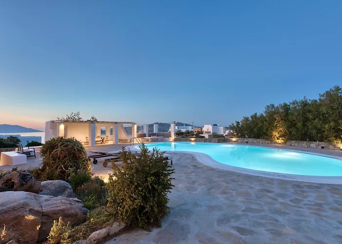 La Villa Zanetti Mykonos Agios Ioannis Diakoftis, situata a 3 km da Kapari, accoglie gli ospiti con una piscina all'aperto in cui rinfrescarsi.